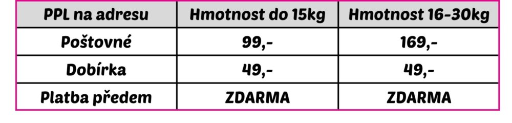 Nezasíláme: nadrozměrné nebo křehké zboží, lonžovací biče, drezurní tušírky a zboží nad 20kg hmotnosti.